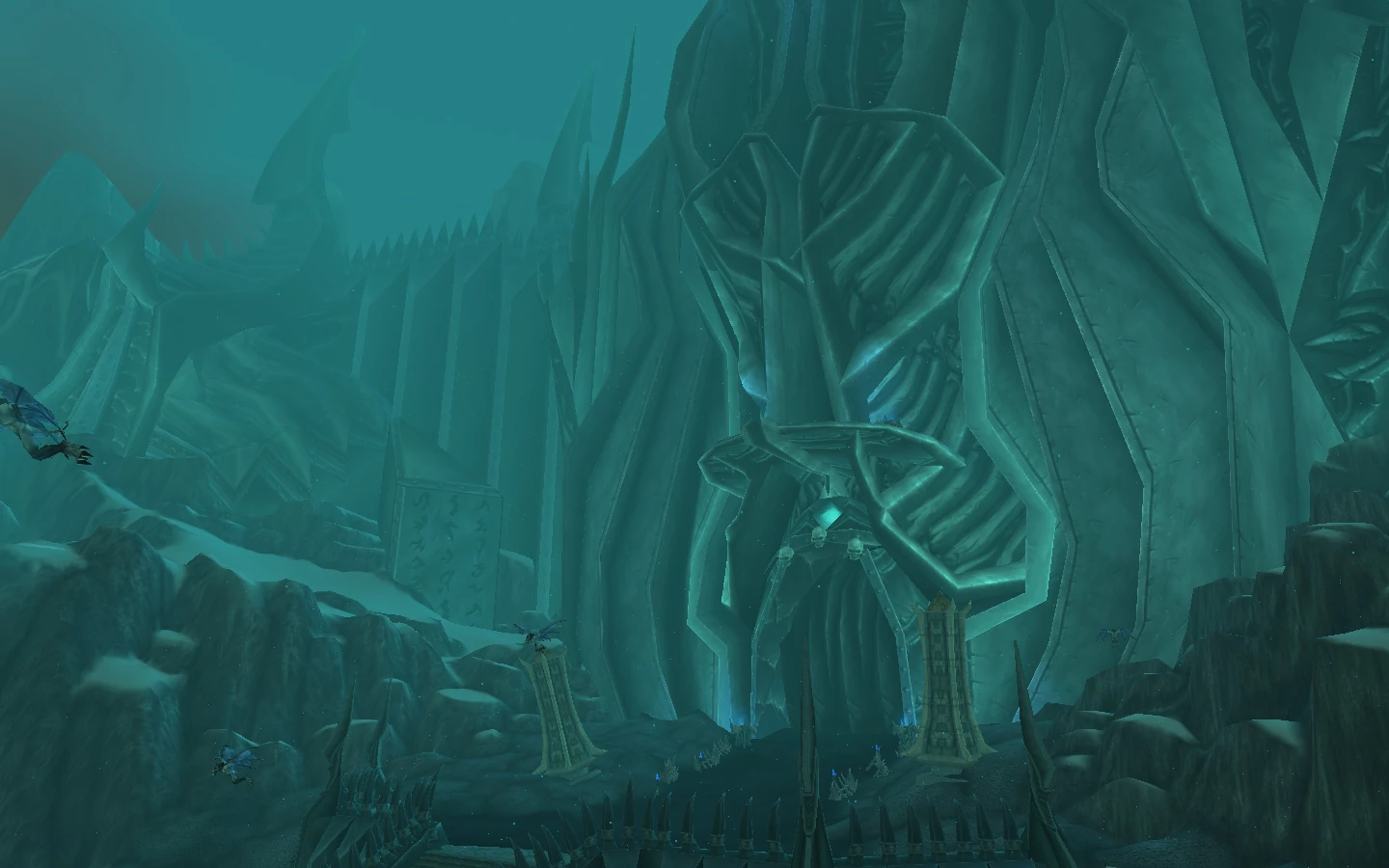 Angrathar la Puerta de Cólera [37, 15]es la muralla que cierra el paso hacia Corona de Hielo, localizada al noroeste del Cementerio de Dragones. La puerta se encuentra bajo el asedio de las fuerzas de la Horda y la Alianza que han trasladado aquí sus ejércitos desde el Bastión de Fordragón y Kor'kron Vanguard con la intención de acceder a la Ciudadela. Es aquí donde los jugadores (excepto los Caballeros de la Muerte) tienen su primer encuentro directo con el Rey Exánime y donde culmina el primer acto de la expansión[1]. El portón está tallado a semejanza del Helm of Domination[2], el casco de Arthas, con saronita, un metal oscuro creado de la sangre de Yogg-Saron a la que los colmillarr llaman 'sangre negra'[3].