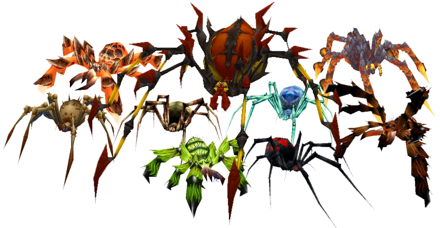 Las arañas son una especie animal encontrada en cualquier parte de los mundos de Azeroth, Draenor e incluso las Tierras de Fuego. Aunque por lo general están asociadas a magias corruptas y oscuras, como la magia vil de la Legión Ardiente o la nigromancia de La Plaga y los Renegados, hay un gran número de especies que viven como seres salvajes. Son comunes en ellas los ataques venenosos y su uso de telarañas en combate, a menudo utilizados a distancia.
