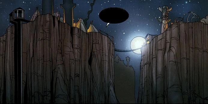 Cima del Trueno está compuesta por cuatro mesetas elavadas, las cuales llevan el nombre de altos. Desde las llanuras por debajo de la ciudad, se puede acceder a la plataforma central mediante ascensores. El alto central se encuentra conectado a los otros altos por medio de puentes de soga y madera.
