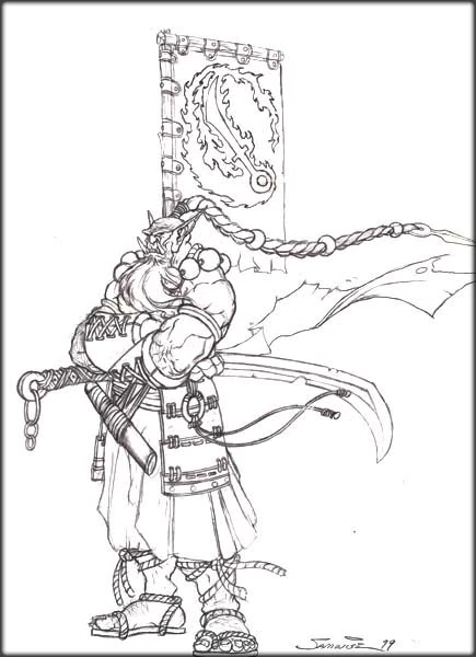 Aunque no son numerosos, los maestros de las espadas son una fuerte élite guerrera dentro de la Horda. Antaño estos hábiles espadachines formaron parte del desventurado clan Filo Ardiente, que se consumió en la agonía de la corrupción demoníaca. Con su clan diseminado y fragmentado, los orgullosos maestros de las espadas sellaron el resuelto juramento de liberarse a sí mismos y a sus hermanos del control de los demonios para siempre. Bajo el comando de Thrall, los maestros de las espadas se han unido una vez más a la Horda y sirven en ella como guardia personal del joven Jefe. Aunque los maestros de las espadas son maestros del engaño y el disimulo, valoran el honor personal por encima de todo.[5]