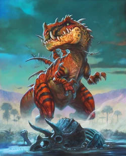 Los demosaurios son unos de los predadores más grandes que han caminado por la faz de Azeroth. Aunque la mayoría se extinguieron hace años, algunos resisten en ubicaciones aisladas hoy en día. Hay muchas especulaciones sobre el propósito de sus degenerados antebrazos. Una teoría afirma que les ayudan a ponerse en pie mientras que otra sugiere que sirve para estimular a las hembras. Es necesaria más observación.[1]
