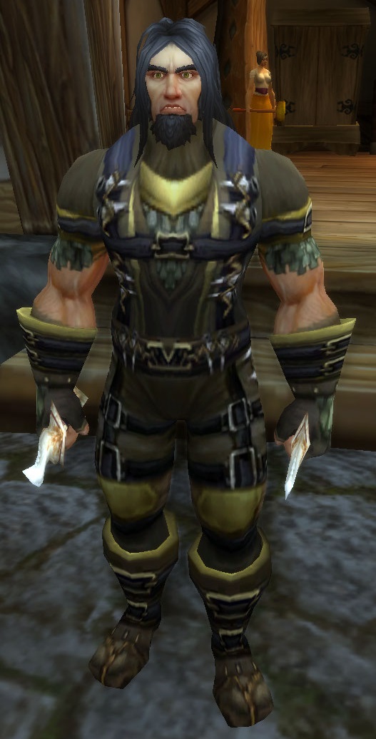 Aparece como un humano de nivel 60 localizado en el Campamento del Orvallo, en el territorio en disputa de las Tierras de la Peste del Oeste. Posteriormente aparece como un PNJ de nivel 100 élite en el Puesto de Vigilancia Mok'gol en Nagrand del universo alternativo, donde rescata al aventurero capturado.