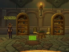 La planta baja de la posada más poblada de Dalaran contiene varios pares de librerías. En las más próximas a la entrada oeste hay una semivacía con un libro en uno de sus estantes [46.8, 40.0].