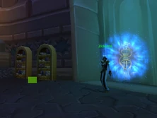 El teletansporte que da acceso a Dalaran, situado entre el Alto de Krasus y el camino que lleva al Bastión Violeta contiene un libro sobre el suelo, enfrente de unas estanterías [56.7, 45.5].