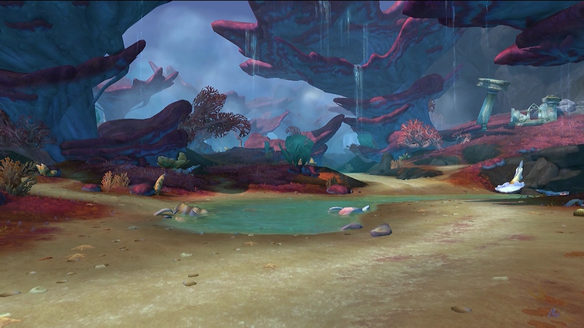 Abyssal Pool · Ashen Strand (Alathir Spire · Bloodfin Village) · Azsh'ari Terrace (Mardivas' Laboratory · Shirakess Repository (Frostbrine Cave · Shassera's Lair)) · Broken Fin Hollow · Chamber of Harvesters · Chitterspine Caverns (Brinestone Cove · Chitterspine Grotto · Mardiva's Hideaway) · Coral Forest (Coral Grove) · Deepcoil Tunnels (Deepcoil Hatchery) · Dragon's Teeth Basin (Basin Hideout) · Ekka's Hideaway · Exile Overlook · The Royal Approach · Gate of the Queen (Palacio Eterno) · Gorgonian Overlook · Guardian Spring · The Hanging Reef (Mezzamere · Newhome) · Imperial Gardens · Kelfin Pocket · Lower Cataracts · Maeding's Challenge · Mrgl's Bar and Gill · Murloco's Hideaway · Roiling Vortex · Spears of Azshara (Darkwater Cavern · The Forgotten Tunnel · Gorm's Den · Thoras'tal Spire · Tide's Fall · Wreck of the Hungry Riverbeast · Wreck of the Old Blanchy) · The Tidal Conflux · Void Chamber · Zanj'ir Terrace (Zanj'ir Keep) · Zanj'ir Wash (Deepsea Refuge · Deepsea Slave Pen) · Zin-Azshari (The Drowned Market · Elun'alor Temple · Highborne Estates · Kal'methir (Kal'methir Citadel (Utama's Stand)) · Lemor'athra Spire · Nar'anan · Orise's Vigil) |