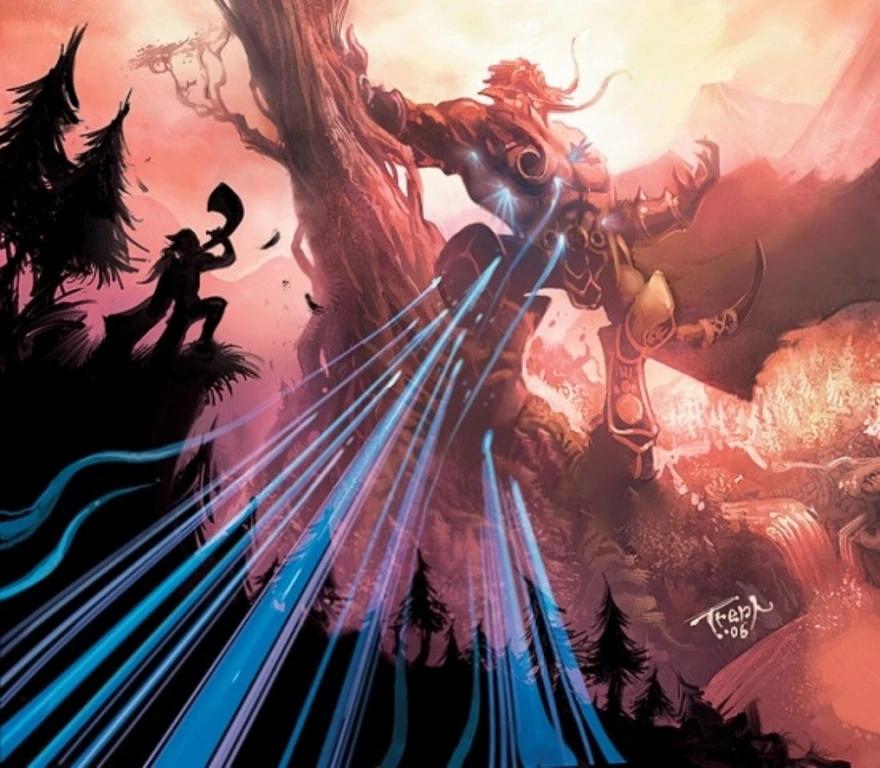 Tal y como les había ordenado, Grom y su clan empezaron a recolectar madera en grandes cantidades, algo que enfureció a los elfos de la noche, guardianes de los bosques. Se desató una lucha en la que el semidiós Cenarius intervino personalmente para dar buena cuenta de los orcos que poco pudieron hacer ante su gran poder.
