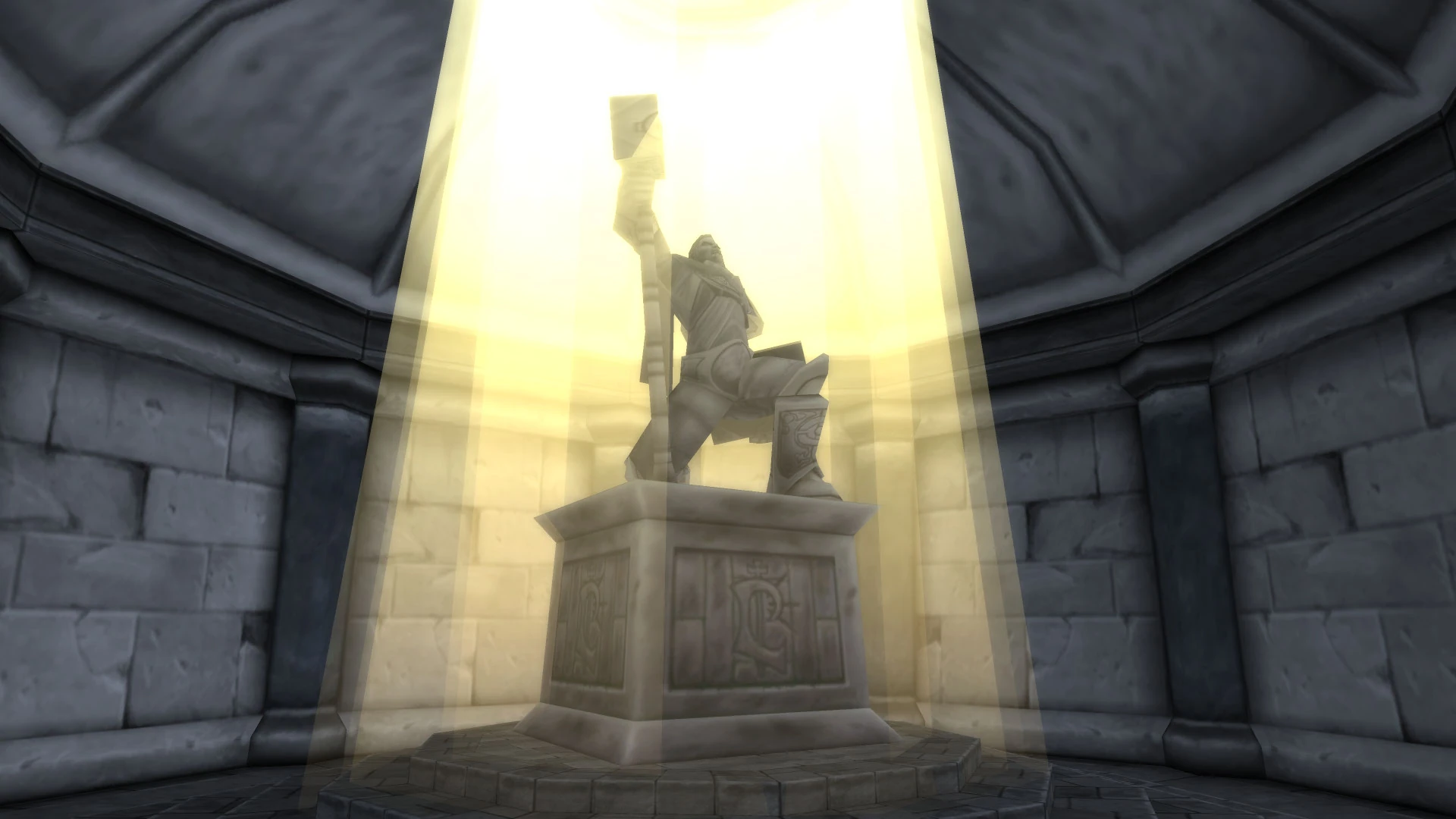 La estatua de Uther en la Catedral de la Luz en la Ciudad de Ventormenta.