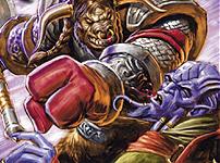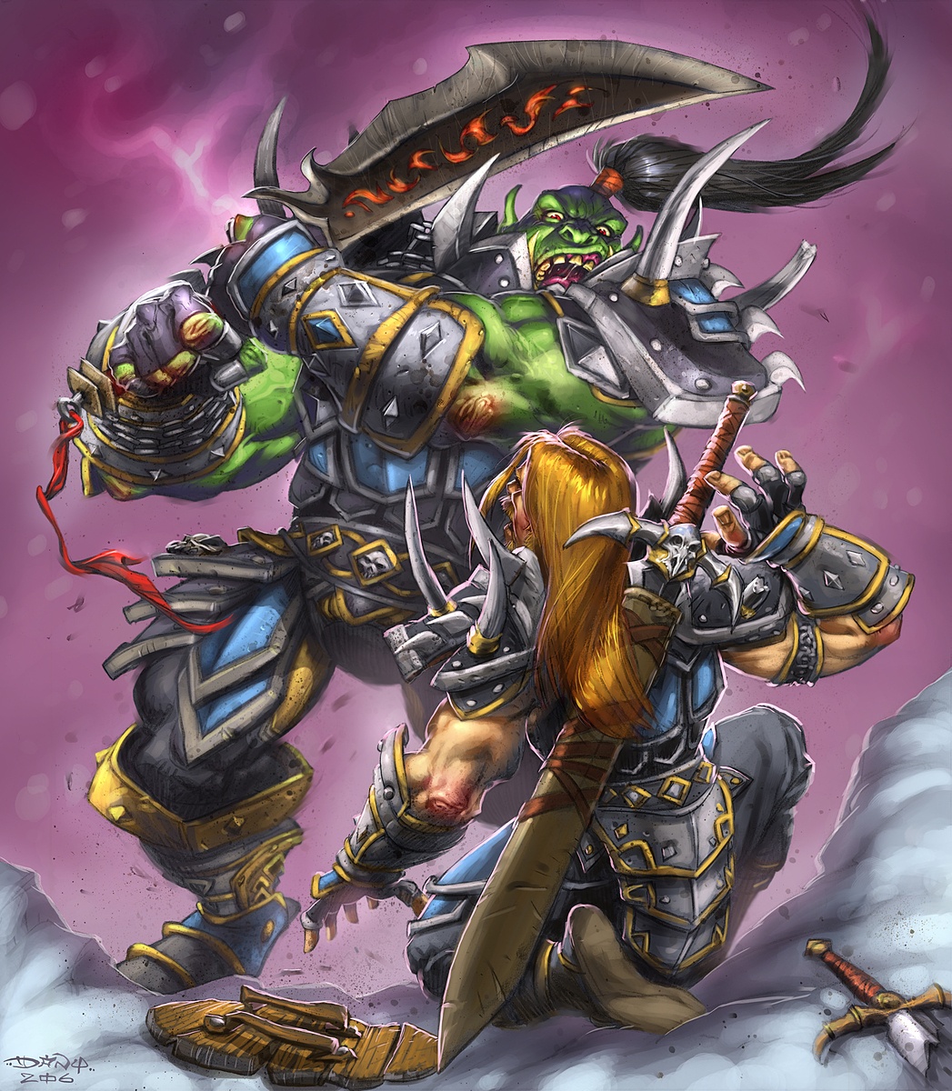 Grommash Hellscream the legendary chieftain of the Warsong clan at the moment before he charged Mannoroth the Destructor which ended in both their deaths.