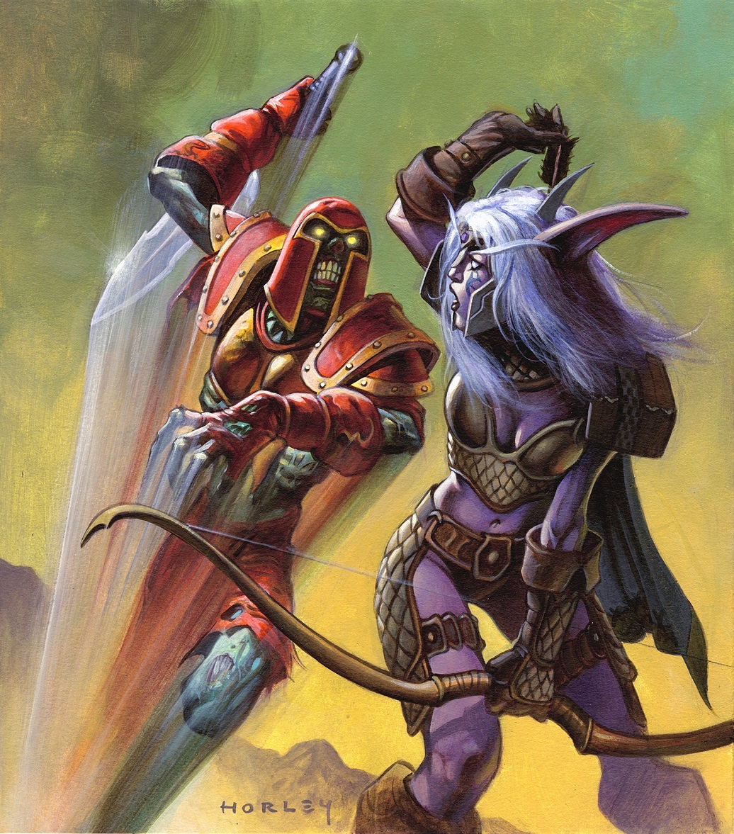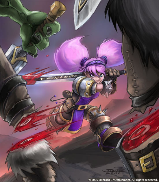 As long as war is waged on Azeroth, there will be men and women who fight those wars. The warrior is no mere sword-swinger. Warriors are skilled combatants, combining strength of arm, knowledge of weaponry, and practiced maneuvers to slice or bludgeon their foes into little red bits. Warriors are the most versatile of the combat classes, and they supplement their fighting prowess with the ability to rally their allies and spur them to victory. Warriors charge into the heart of the battle, take several lives, and live to tell the tale. All races fight, and all races boast many warriors in their ranks. Warriors are common among dwarves, Forsaken, humans, and orcs, but are less so among the other races. Masters of swords, spears, and weapons of all kinds, warriors share a common way of life on Azeroth. Using their abilities to deal pain and cause bloodshed, warriors are deadly adversaries and welcome friends in violent times (which seem to be all the time in recent decades).[7]